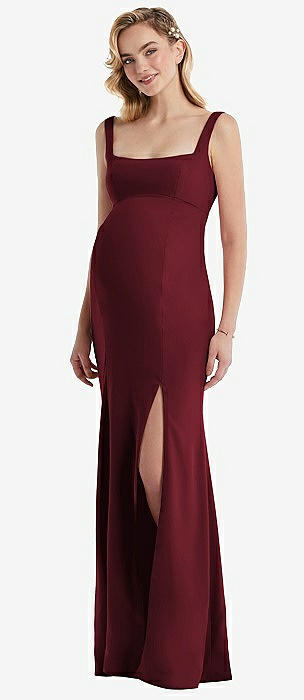 Wide Strap Square Neck Maternity Trumpet Gown in cabernet