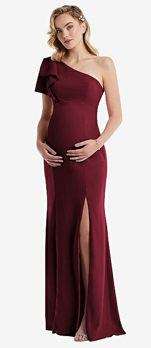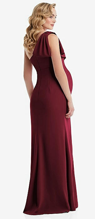 One-Shoulder Ruffle Sleeve Maternity Trumpet Gown in cabernet