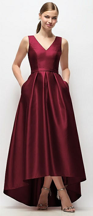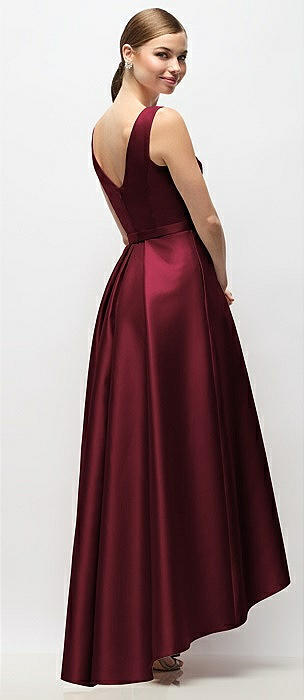 Sleeveless Pleated Skirt High Low Dress with Pockets in cabernet