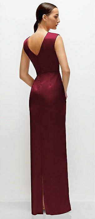 Sleeveless Satin Trumpet Gown with Bow at Open-Back in cabernet