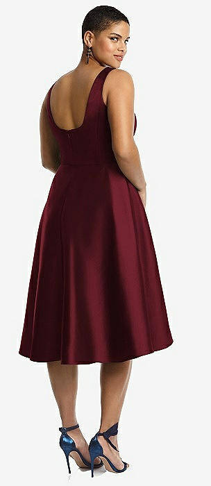Cap Sleeve Pleated Skirt Dress with Pockets in cabernet