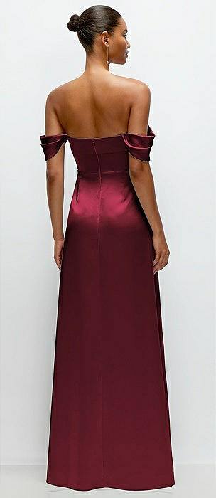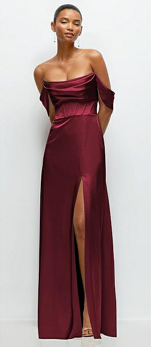 A-Line Satin Maxi Dress with Convertible Off-the-Shoulder or Strapless Looks in cabernet