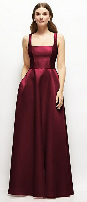 Square-Neck Satin Maxi Dress with Full Skirt in cabernet