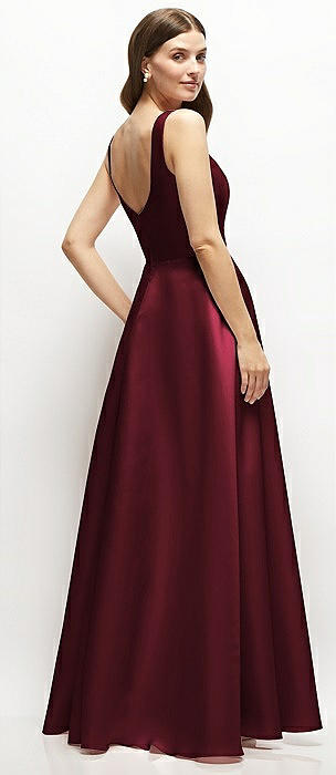 Scoop Neck Drop Basque Skirt Satin Maxi Dress with Pockets in cabernet
