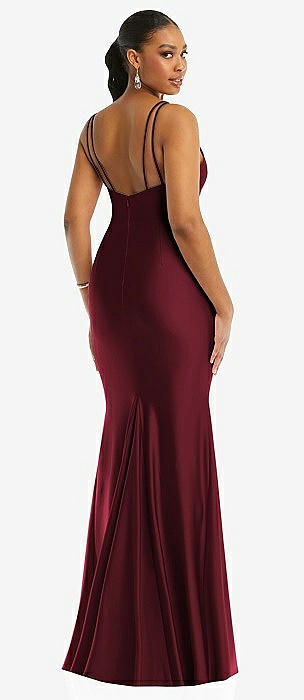 Cowl-Neck Open Tie-Back Stretch Satin Mermaid Dress with Slight Train in cabernet