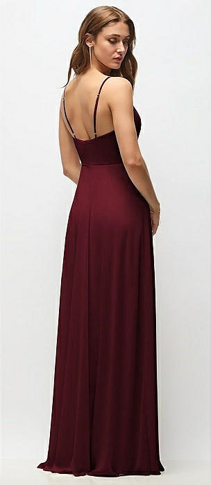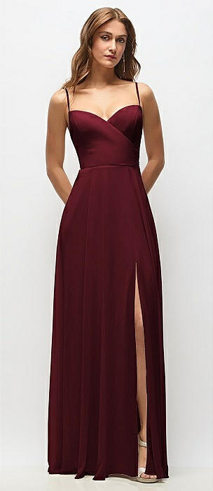 Wrap Bodice Chiffon Maxi Dress with Adjustable Spaghetti Straps in cabernet