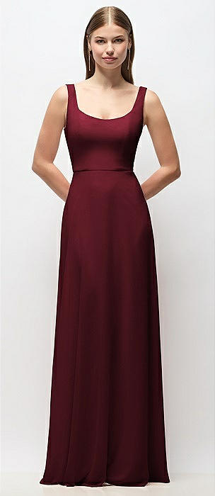 Scoop Neck Tank Strap Chiffon Maxi Dress in cabernet