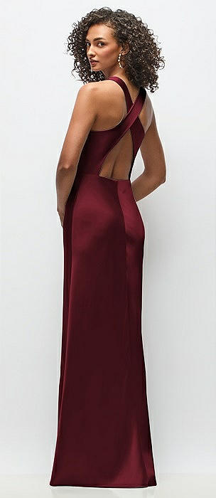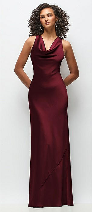 Cowl Neck Criss-Cross Back Satin Maxi Dress in cabernet