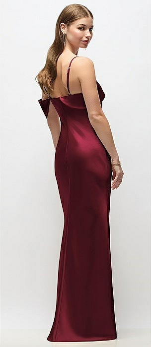 Asymmetrical Cuff Neck Stretch Satin Bias Maxi Dress with Adjustable Spaghetti Straps in cabernet