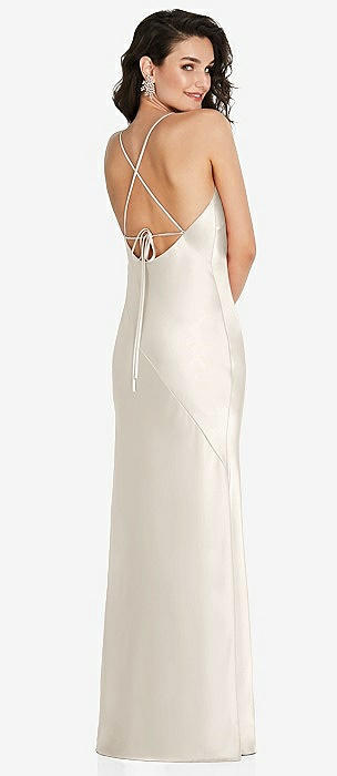 Cowl Neck Criss-Cross Back Satin Maxi Dress in ivory