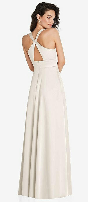 Stand Collar Halter Maxi Dress with Criss Cross Open-Back in ivory