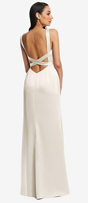 Criss-Cross Cutout Back Maxi Dress with Front Slit in ivory
