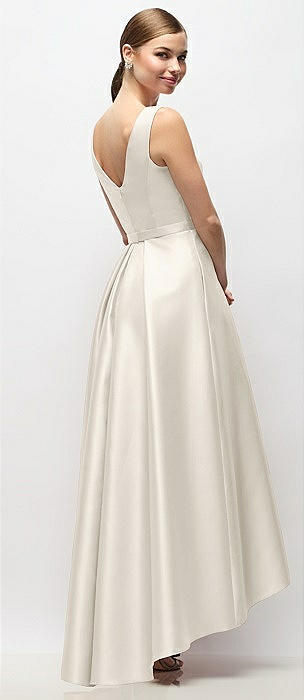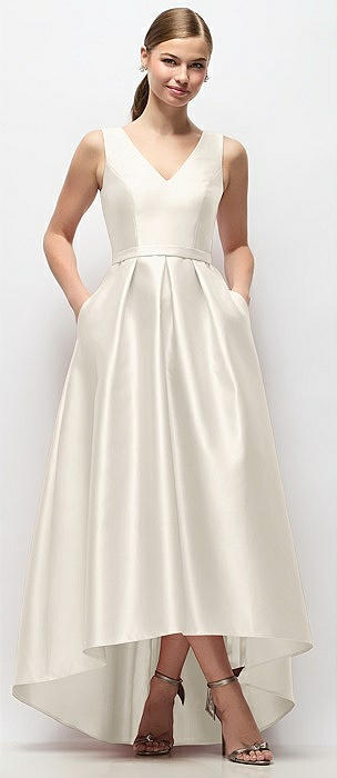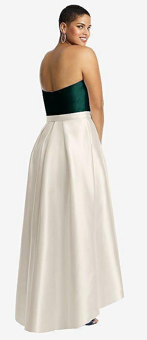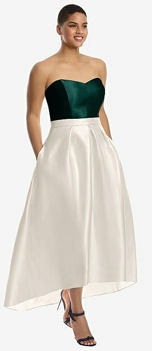 Strapless Satin High Low Dress with Pockets in ivory