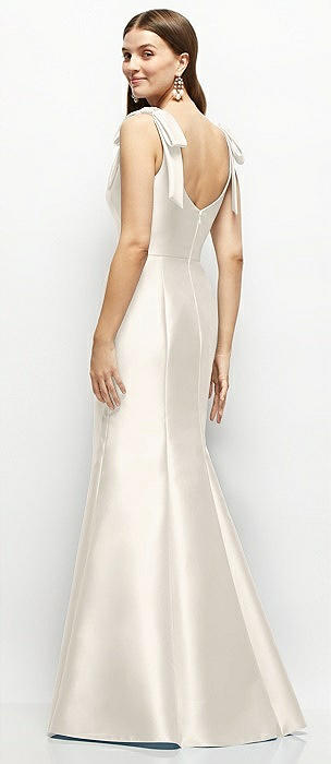 Satin Fit and Flare Maxi Dress with Shoulder Bows in ivory