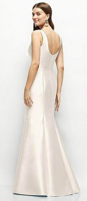 Satin Square Neck Fit and Flare Maxi Dress in ivory