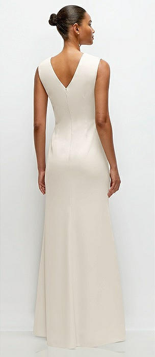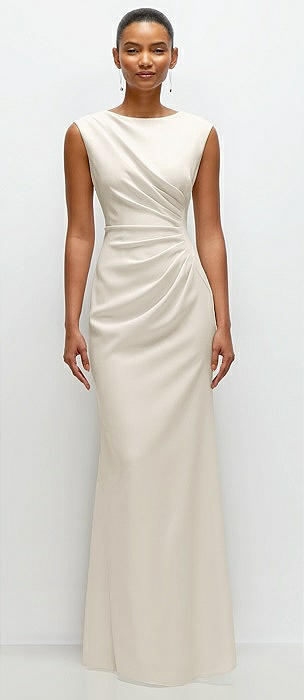 Sleeveless Cap Shoulder Crepe Maxi Dress with Trumpet Skirt in ivory