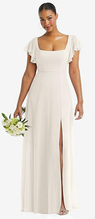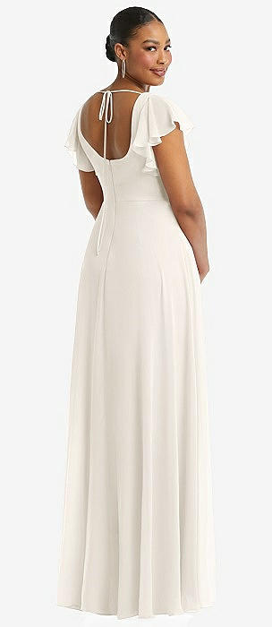 Flutter Sleeve Scoop Open-Back Chiffon Maxi Dress in ivory