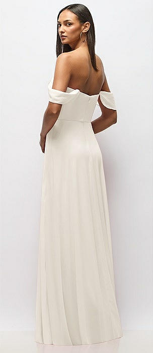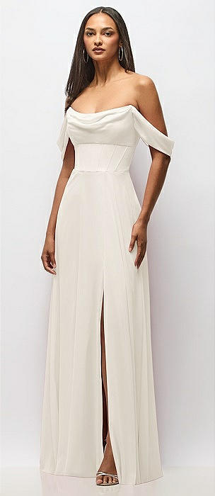 Chiffon Corset Maxi Dress with Removable Off-the-Shoulder Swags in ivory