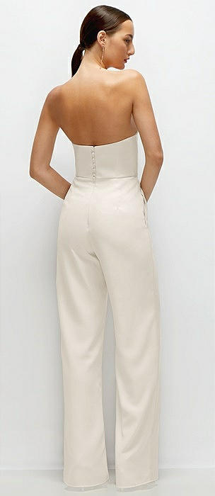 Strapless Cat-Eye Corset Crepe Wedding Jumpsuit in ivory