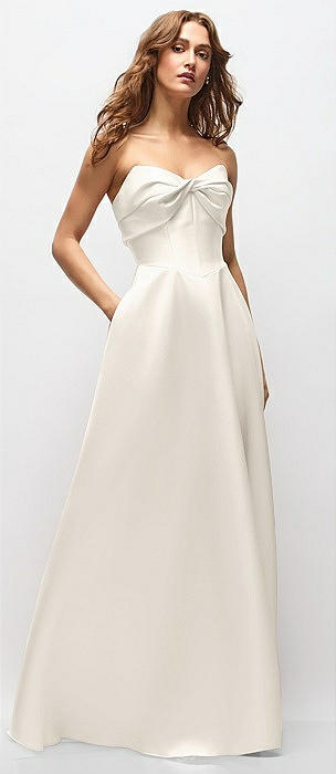 Strapless Twist Cuff Neck Satin Maxi Dress with Basque-Waist & Full Skirt in ivory