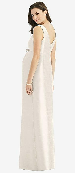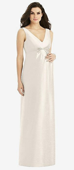 Scoop Neck Satin Column Maxi Dress with Bow at Empire Waist in ivory