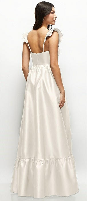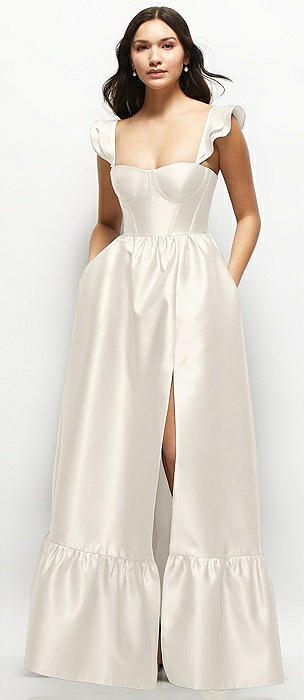 Satin Corset Maxi Dress with Ruffle Straps & Skirt in ivory