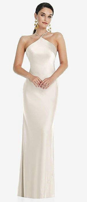 Draped Twist Halter Tie-Back Trumpet Gown in ivory