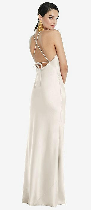 Diamond Halter Bias Maxi Slip Dress with Convertible Straps in ivory