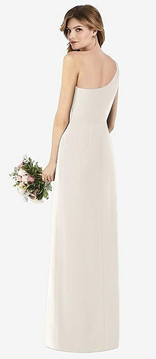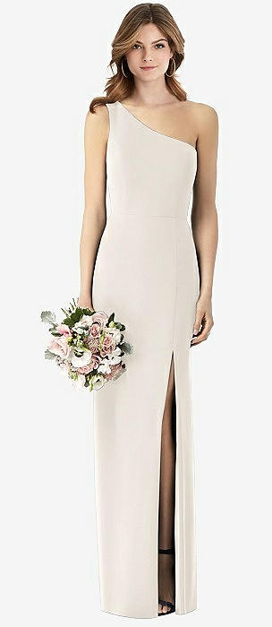 One-Shoulder Crepe Trumpet Gown with Front Slit in ivory