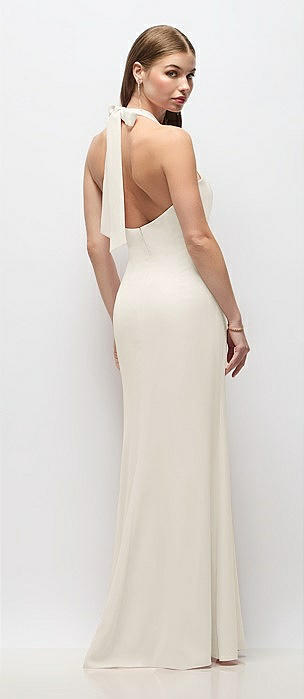 Notch Crepe Trumpet Gown with Front Slit in ivory
