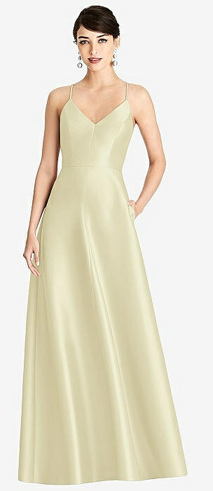 V-Neck Full Skirt Satin Maxi Dress in butter yellow