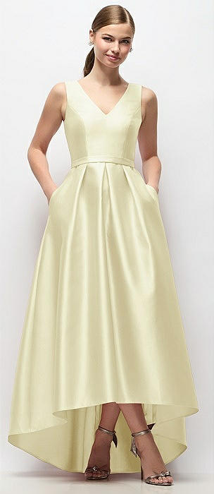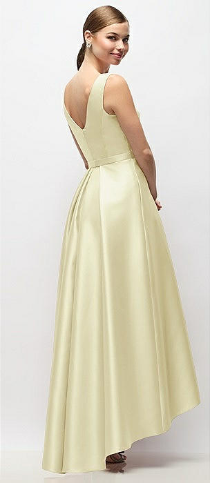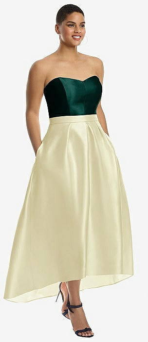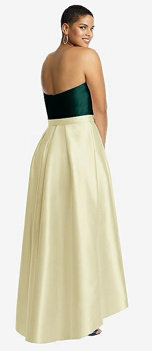 Strapless Satin High Low Dress with Pockets in butter yellow