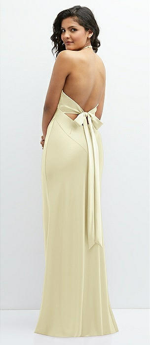 Plunge Halter Open-Back Maxi Bias Dress with Low Tie Back in butter yellow