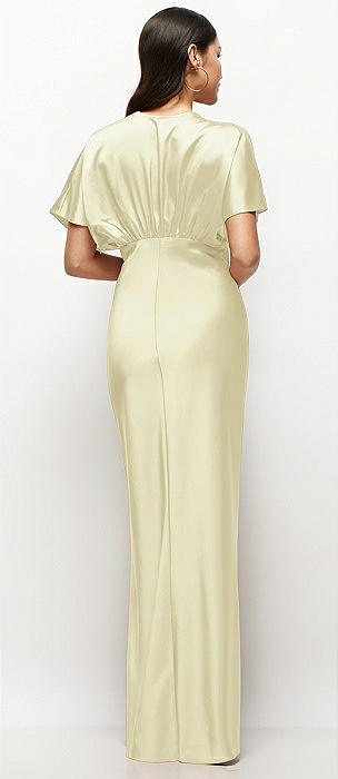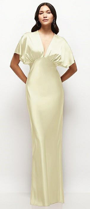 Plunge Neck Kimono Sleeve Satin Bias Maxi Dress in butter yellow