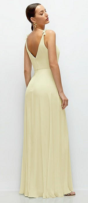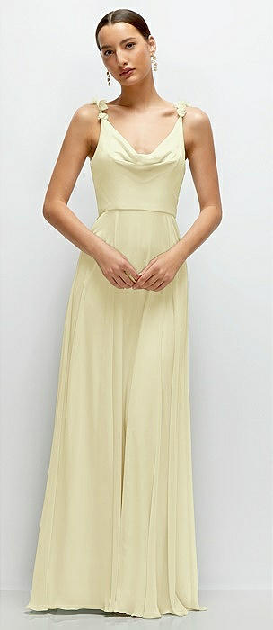 Cowl Neck Chiffon Maxi Dress with Hand-Worked Petal Straps in butter yellow