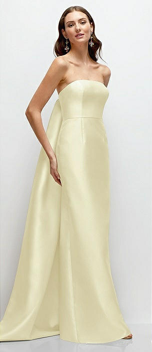 Strapless Satin Column Dress with Removeable Watteau Train in butter yellow