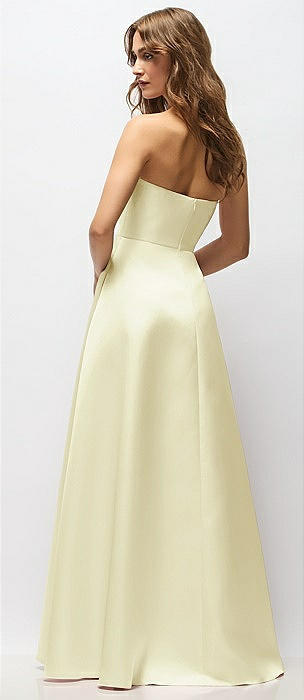 Strapless Hand-Pleated Bodice Satin Maxi Dress with Full Pleated Skirt in butter yellow