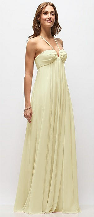 Stand Collar Halter Maxi Dress with Criss Cross Open-Back in butter yellow