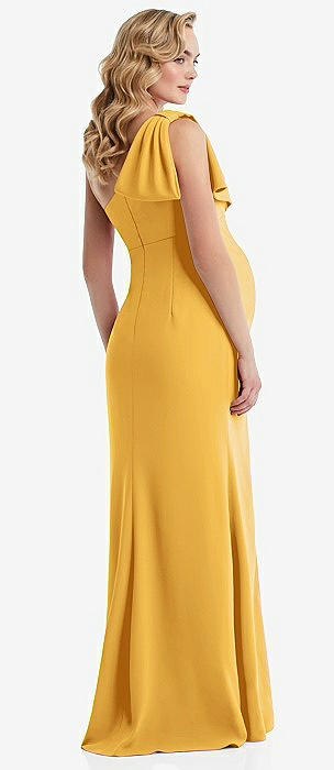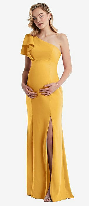 One-Shoulder Ruffle Sleeve Maternity Trumpet Gown in NYC yellow
