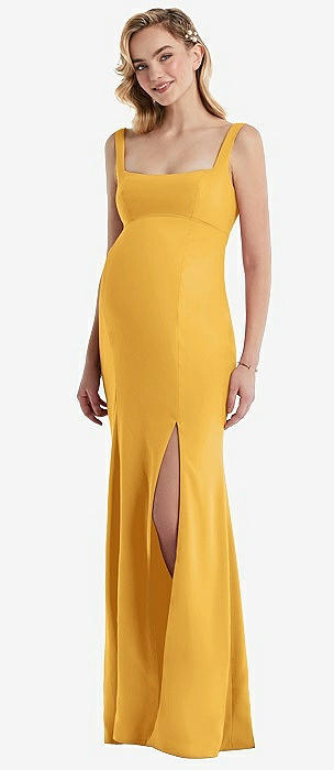 Wide Strap Square Neck Maternity Trumpet Gown in NYC yellow