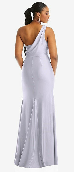 Draped Cowl-Back Princess Line Dress with Front Slit in french blue
