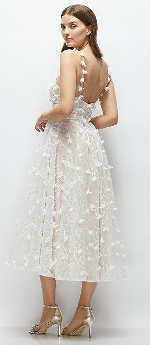 3D Floral Embroidered Little White Midi Dress with Nude Corset Underlay in ivory