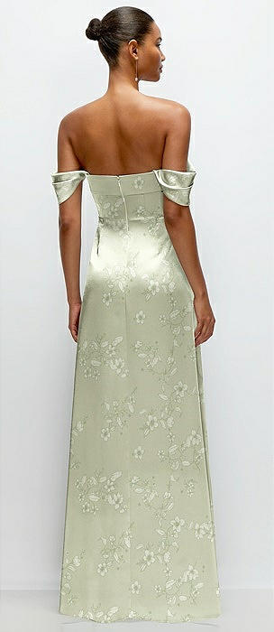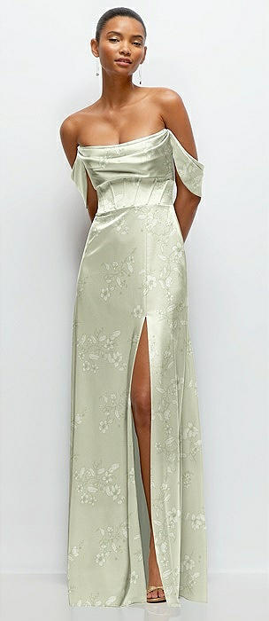 Floral A-Line Satin Maxi Dress with Convertible Off-the-Shoulder or Strapless Looks in vintage primrose celadon