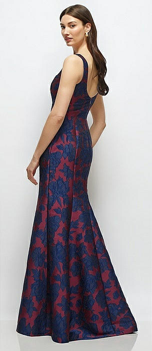 Heritage Floral Jacquard Square Neck Maxi Dress with Trumpet Skirt in burgundy midnight floral