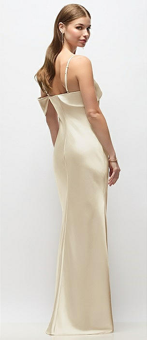 Asymmetrical Cuff Neck Stretch Satin Bias Maxi Dress with Adjustable Spaghetti Straps in champagne