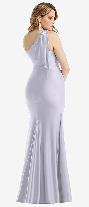 Cascading Bow One-Shoulder Stretch Satin Mermaid Dress with Slight Train in silver dove