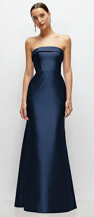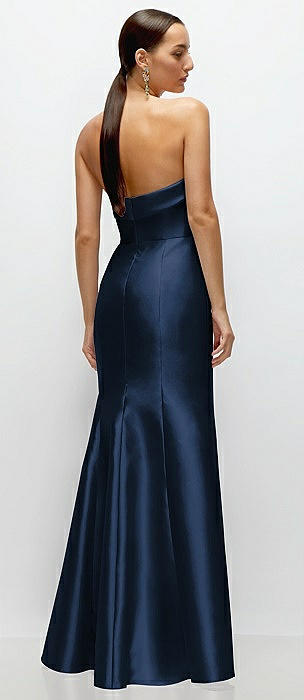 Strapless Cuff Neckline Satin Trumpet Gown in midnight navy