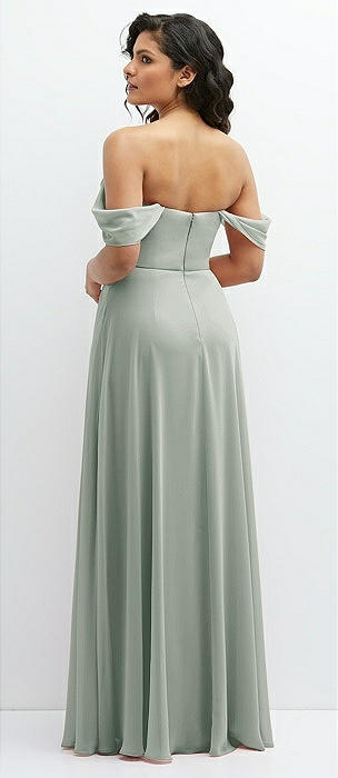 Chiffon Corset Maxi Dress with Removable Off-the-Shoulder Swags in willow green