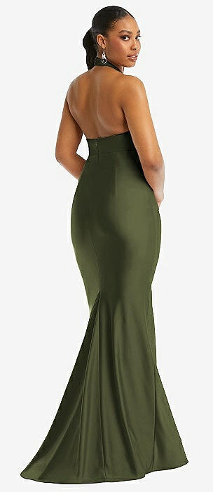 Criss Cross Halter Open-Back Stretch Satin Mermaid Dress