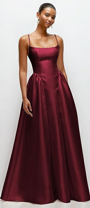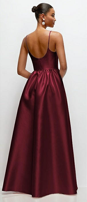 Scoop Neck Drop Basque Skirt Satin Maxi Dress with Pockets in cabernet